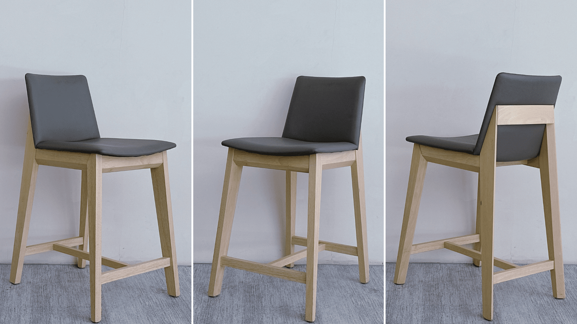 瑞典實木灰色皮革帶扶手中吧椅